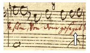 ここに関する限りは、バッハの歌詞はカロフ注解本ではなくルター訳決定版に基づいているように見えるが、しかし、実際にはそうとは言えない。逆に、ルター訳決定版と違い、カロフ注解本と同じという箇所もあるからである。例えば、マタイ伝26:64(MP36a:6-7)は下記の通りである。