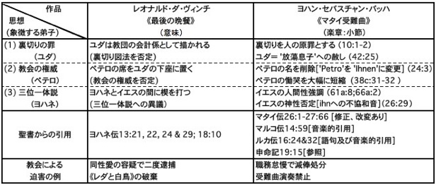 表16 《最後の晩餐》と《マタイ受難曲》に込められたダ・ヴィンチとバッハの思想比較表